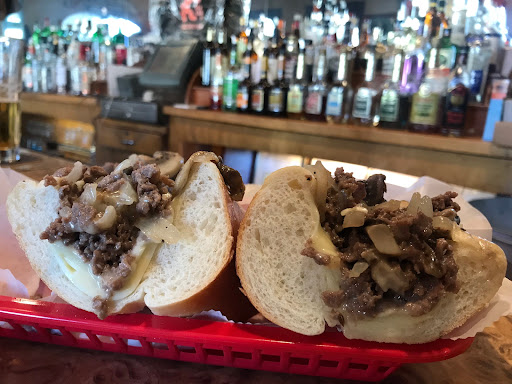 Good bar food, relaxed atmosphere, great back deck, dog-friendly. Two bars, good spot to get take-out beer late. Friendly and cozy