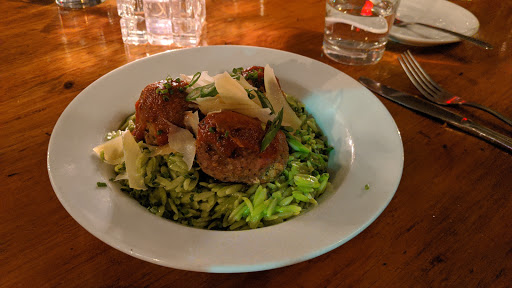 Wish we found this place sooner. One of my new favorites. Atmosphere, excellent. Not too loud. MAUREEN our server was knowledgeable and fantastic. Service was quick. Food was delicious. Eine choices were great. Had cheese and charcuterie plate, perfectly balanced. Had short rib. Melt In your mouth delicious and large portion. Wife had homemde gnocchi. Very good. Dessert was a chocolate Grenache with sea salt, crumbled walnut and raspberry sauce Amazing. Great place, highly Recommend.
