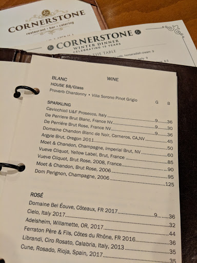 Weve enjoyed Happy Hour, dinner, and brunch at Cornerstone, and I recommend all three. I ordered the mussels and salad for dinner, and it was amazing. The Happy Hour appetizer specials are a great deal. Brunch offers a creative menu and a nice opportunity to sit outside and enjoy the lovely Aspinwall scenery.