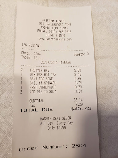 Perkins always has really good baked goods. Their breakfast is pretty good, most of there other food is good too. They do tend to be very busy at times, and seem to cater to a much older crowd.