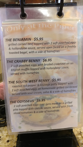 We stopped at the Pied Piper Diner for a late lunch on a Saturday. The crab bisque was thicker than pudding, tasteless and the small crab piece felt like an extremely overcooked noodle in my mouth. I could immediately tell that the pickled beets were old just from looking at them, and one taste proved it. The smoked sausage was good after I cut off the chewy skin, and luckily it only had a couple of tiny bone pieces. I learned later that it was a wise decision to ask for the gravy on the side. The filling was so so. I could hardly believe I was hearing my own voice order dessert but I went for the key lime because it was the first piece out of the pie. It had the consistency of finely scrambled eggs with a slight lime flavor. My mom ordered a grilled cheese sandwich with bacon, and after I saw her head snap back trying to break off a piece of bacon I knew I wasnt alone. But I did hear their breakfasts are good.