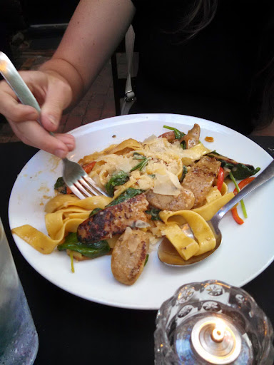My wife loves this place. The food is good, but a little expensive for me. The decor is very eclectic. The tavern side doors have bands that play every so often. Smokers can eat outside on the patio.