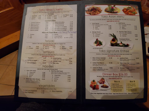 Tako doesnt look like much -from the outside. Its clean and pleasant inside, you can sit at a table, the Sushi Bar or one of the private enclosed rooms. The fish is always fresh. Lots of Maki (rolls) to select from. I go with friends usually, but I like the food so much I will go to the Sushi bar alone just to eat. No liquor, I wish they had Japanese beer.