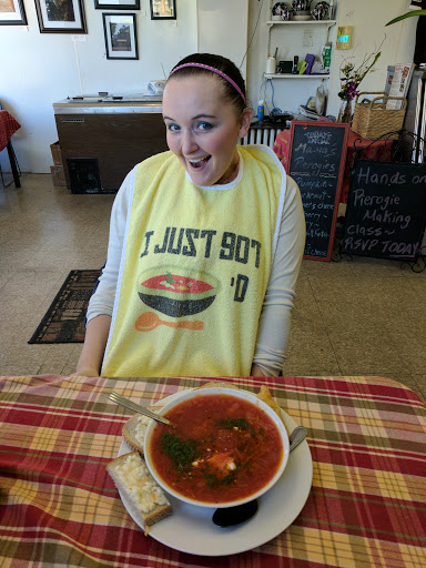 A little bit of home away from home....one of my two favorite places in the Lehigh Valley. A place where the owner really gets to know your name. Excellent food, especially the Russian dishes (the owners are from Kiev). They have 5-course Kiev night dinners about once a month for $40, huge amount of food, and are open for breakfast & lunch Mon-Sat. I love the Borsch--hot in winter, cold in summer! Lovely fresh salads, too. Lots of Russian specialities offered....other deli food, too, but I always stick to the Russian food since thats their specialty. The decor is shabby/chic, with some nice touches...rotating art on the walls, sometimes floors on the tables. Kinda like Cheers where they get to know your name. Stop by and Vica is likely to Facebook Friend you and then mention you on FB. Soup and a huge salad costs about $11-$12, so quite reasonably priced.