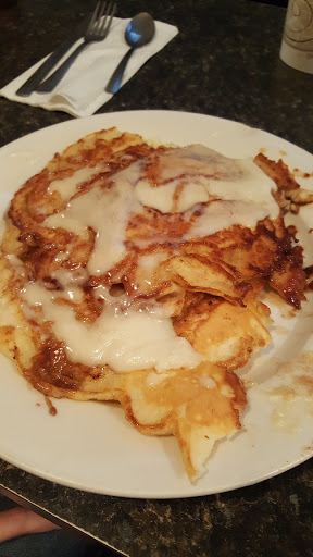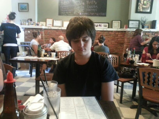 Im from CA and out there we have a little mountain town called Idyllwild, in that little town is a place called The Red Kettle that my husband and I absolutely LOVE!! We moved here a week ago and decided to try this place, since it seemed a bit similar to The Red Kettle. There were a lot of college kids, its a little crowded and smokey on the inside, but we still sat down and ordered some food. My hubby got eggs, bacon and home fries. I ordered french toast, bacon, eggs, home fries and toast. OMG! It was ALMOST as good as The Red Kettle, the home fries were so delicious, the apple wood smoked bacon, which is the only kind I really like was cooked perfectly and the french toast had the perfect amount of cinnamon! We were full, satisfied and completely happy with this place! Well definitely be going back to this place for Saturday morning breakfast!!