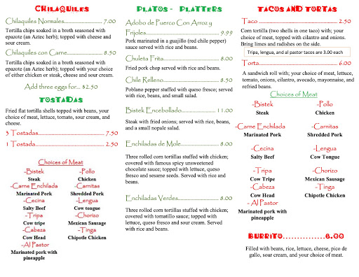 Very disappointed with this place! I had the Enchiladas de Mole, and it was probably the worst Mexican plate I have ever had. The beans were tasteless, the rice was dry, and the sauce that covered the enchiladas was disgusting. I did not have anything else, but if I was you, please do not get the same plate I had.