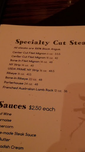 Had lunch reservations for Mothers Day for a party of 5. We were impressed with the decor and ambiance. The service was very professional - we expected to be rushed on such a busy day, but the atmosphere for our 2 pm seating was very relaxed and attentive. The menu was impressive, but some items fell a little flat. The lobster bisque had large meaty chunks of lobster. The special arugala salad, though, was "just a salad" and didnt wow my brother (who admittedly isnt much of a foodie). My father loved the cheese plate, but it was probably due more to quantity than quality - the cheeses were genererously portioned, but pretty simple and nothing notable. Entrees were similarly hit or miss: the crab cakes were amazing - two huge portions of jumbo lump crab with no discernable fillers - but the drizzle of remoulade was meager. The pork saltimboca was a great mix of flavors. The two steaks were both cooked as ordered, but neither was terribly flavorful, and the filet and shrimp tempura was naked and dry - surprising for a place that bills itself as a steak place. A version of chicken cordon bleu came with a sundried tomato sauce that was more of a clash than a compliment. The sides are done a la carte and "family style" - they are generous portions, but unless everyone wants the same side dish you will pay a lot extra (for what arguably should be included in entree prices - which are all on the high side) and waste a lot of food. We didnt drink wine or cocktails (just soft drinks and coffees), and we split 2 desserts for the table (both of which were delicious - the apple tart and chocolate godiva), and the bill was over $300 for 5. It *almost* deserved those prices, but not quite. I think this would be a great place to celebrate a special occasion when the ambiance and service could make up for the fact that the food is good but not great. A little more wow from the kitchen could make this the "full package" and well worth the menu prices.