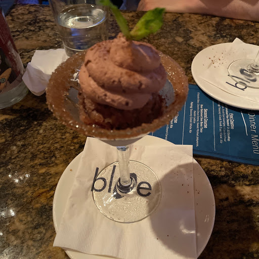 I went to the Blue for the first time with my wife to celebrate our 25th anniversary. While the restaurant is absolutely beautifully inside and out, it seemed out of place for the neighborhood. However, it did not match the 5 star ratings for everything else. The service and the staff was very hospitable. The waitress gave us all the specials / recommendations, and was very pleasant. My wife loves lobster, so she ordered that for herself. She was not disappointed other than saying, “it was average – good tasting lobster”. I ordered the 16 ounce Black Angus steak, with crab meat / mozzarella cheese on top of it. I wanted it medium rare, and what I received was the center on the steak perfect (and it tasted good) but the rest of the steak burnt on the outer portions. Not just the very edge’s, I mean, about 25% of my steak was “burnt to a crisp”. By the time the manager came around to check on our dinner, I eat the good parts and carved away the burnt sections of the steak for him to see. He did offer to replace the steak, but I said no, just want you to let the chef know that the steak would have been great if it was evenly cooked. Also, I did not really like sharing the immediate dining area with guests dressed in sneakers and jeans. Especially, when my wife and I were dressed up to go to nice fancy restaurant. It’s too bad that the Blue does not care about their customer’s dress attire. We felt like we siting in a fancy casual dinner. The Blue should have some type of dress code. So, because the lobster and steak was average, I really rave about the Blue other than it’s a nice looking restaurant I had higher expectations on the food and was surprisingly disappointed. My wife and I are willing to give the Blue another chance for either a brunch or lunch. But not a dinner.