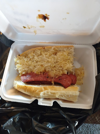 This is take-out but they have picnic tables on either side of the building, its located on a main road so traffic noise is pretty loud. The food was excellent though,we had the brisket sandwich and the pulled pork sandwich and both were delicious. The hand cut fries were also very good and the prices were very reasonable for the portion size. They have a large menu that includes burgers do baby back ribs and also a childs menu. The only reason I didnt give them 5 stars is because of the traffic noise.