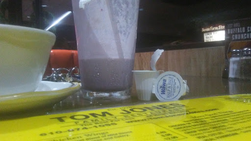 Youre not signing up for a 4 star restaurant. you go there for the $2.99 blue ribbon special breakfast. where else can you get 2 bacon, 2 sausage, 2 eggs, 2 pancakes, toast, juice and coffee for that price??? And isnt it just a little bit fun to go someplace with original orange vinyl seats and waitresses with cute little red skirts?? its a retro experience. if youre on the frequent flyer plan, theyll know your name when you go in to sign up. The waitresses are pleasant, they keep your coffee cup full and the quirky little things make it uniquely Tom Jones.