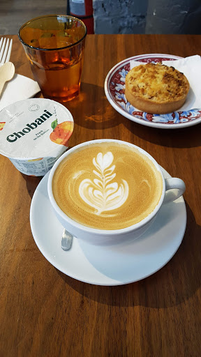 Excellent quality coffee. Off street cafe parking a huge plus. Wonderful pour over coffee brew if your time allows. Perhaps the space inside is a little small, but a wonderful historic building!