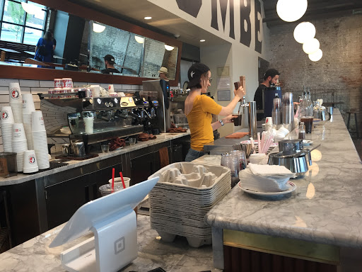 Great store "industrial chic" vibe with stellar coffee (I had the Ethiopian iced pourover, which I didnt like at first but then really loved, being smooth and fruity and getting better as I slowly drank it, more intentionally). The apricot tart was also fantastic!