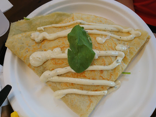 Confusing service, long wait times, reasonable prices, great food. I went with a friend on Sunday. They got us a table quickly and took our drink orders right away. It took almost 10 minutes for someone to bring out drinks, and a total of 15 minutes for the waitress to come take our food orders. We actually had to go inside and ask to place our orders, and the waitress responded rudely. Also, they dont tell you that you have to pay inside afterwards and theres no room to stand in a line, so theres this awkwardness of being cramped up in the middle of a bunch of other people waiting for take out orders, while you have to dodge people trying to walk past you. The business itself seems very disorganized, I hope they improve their management in the future. The food was wonderful though, we got savory crepes.