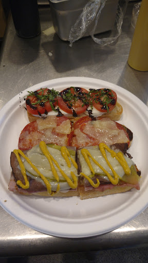 Nice little place with indoor and outdoor seating. Their fresh squeezed orange juice was very good as was "The Uovo" which is their eggs benedict. Only thing I wasnt impressed with was that the food was served on paper plates. I just found that odd and kind of half-assed. To me that is acceptable if youre getting pizza or hot dogs from a street vendor but not for a sit down meal at a cafe or restaurant. Our waitress was very pleasant and helpful and the mens bathroom was fairly clean as well. Overall I would recommend trying this place at least once.
