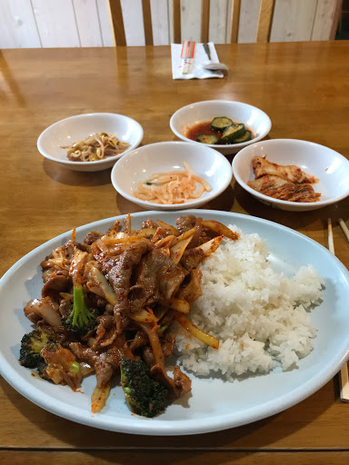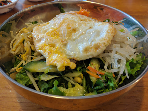 Amazing food! Great atmosphere, and you can even buy large containers of kimchi and other banchan. I highly recommend the bibim bap. Plenty of vegetarian (and vegan) options are available, but even meat-eaters will be particularly pleased as several of the dishes are literally piles of spicy meat (bulgogi is no joke! Super good!). Great service, and when you ask for "spicy" they will most certainly deliver-- the spice must flow. Dont be afraid to ask questions either, as they are great at recommending dishes that you are sure to love. And do not forget to eat that kimchi-- its the best Ive had so far.