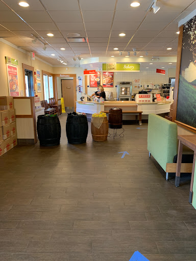 The food was o.k. I ordered soup and a half sandwich ,the soup came right away,however the sandwich came much later.No apology,the place wasnt even busy.Also waittress didnt ask if I wanted more coffee.By the way the manager had to bring the sandwich out.The wait staff in Washington is much nicer.