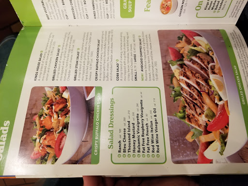 SORRY KINGS SINCE UNDER NEW MGMT MY FAMILY DIDNT REALLY CARE FOR IT YOU BROUGHT US SEVERAL XS OUR APPLE PIE YOU SAID YOU WERE WARMING UP BUT IT WAS EXTREMELY SMALL AN VERY COLD....ALSO MY BELIEVED STEAK WASNT COOKED TO PERFECTION SHE HAD TO SEND IT BACK THREE XS THEN JUS ORDERED A BLT AN IT HAD NO CHEESE PLZ PICK UP SERVICE AGAIN THERE WAS A VERY NICE FAMILY RESTAURANT BEFORE...ALSO LIKED IT BETTER WHEN YOU TOOK URE BOOK TO CHECKOUT NOT ENUFF HELP AN HAVE TO WAIT TO LONG FOR URE FINAL BILL VERY DISAPPOINTED ALL OF US....
