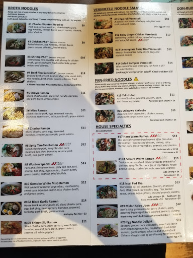 This was a unique treat. Quality,fresh ingredients. .homemade noodles make this. I had Yaki-Udon; Japanese pan fried udon noodles with bok choy sauteed in house sauce and fried tofu. My husband had Midori Spicy Udon; pan fried udon noodles with chicken, basil, and bean sprouts in a spicy green curry and coconut milk, garnished with peanuts and cilantro. His was very tasty. We also shared fresh spring rolls; fresh hand rolled rice paper filled with lettuce, basil leaves and cold vermicelli rice noodles and plum dipping sauce. Stop in and try it! Its very good.