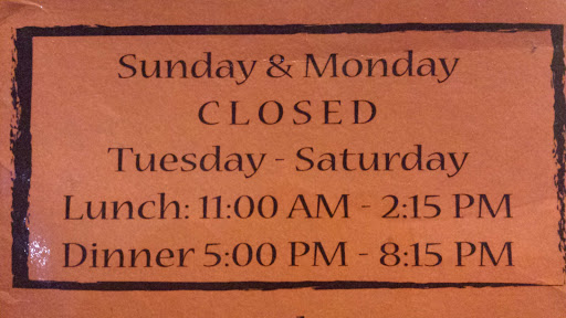 | Working: | Closed 11AM–2:15PM 11AM–2:15PM 11AM–2:15PM 11AM–2:15PM 11AM–2:15PM Closed |