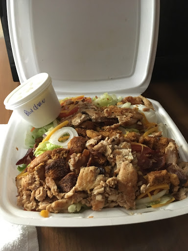 Fast and friendly service. Their salads are always fresh and the portion sizes will fill you up. Even the lunch sized portions are more than enough to satisfy your hunger. You can order the cheaper lunch sizes anytime day or night. A good salad is hard to find!