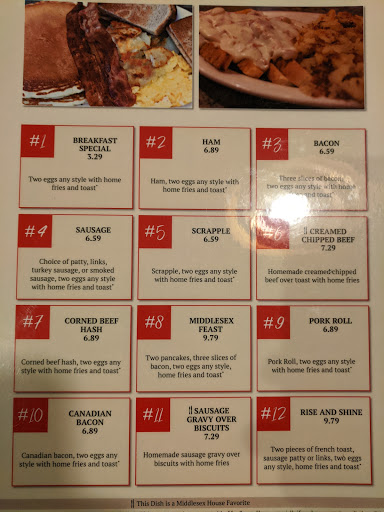 Middlesex offers a huge variety of food from breakfast, lunch, dinner and desserts. Everyday has fresh made specials including prime rib, broiled haddock, vegetarian options, stir frys, and homemade soups. They also have a senior portion menu that offers smaller portions with a lower price. Breakfast served all day, call ahead service for pick up, exceptionally friendly staff, and a great family atmosphere.
