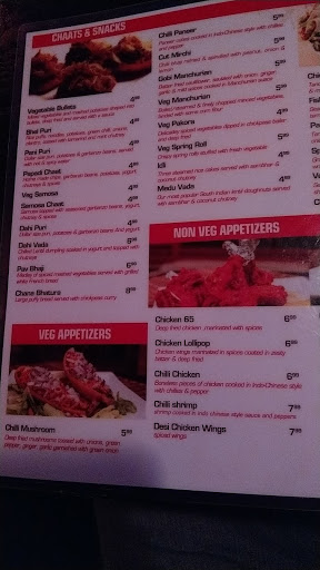 Appetizers- Some of them are good. Keep away from the chaat. Indi- Chinese - Sometimes, it is over salted. Could be the soy, very off putting. Curries. A big no no no. Its almost always heavy whipping cream and color. WHats wrong with you people!!? Biryani - Mutton biryani is the best. I go back to this place often, I do. I just order the same few things all the time. Its safer that way.