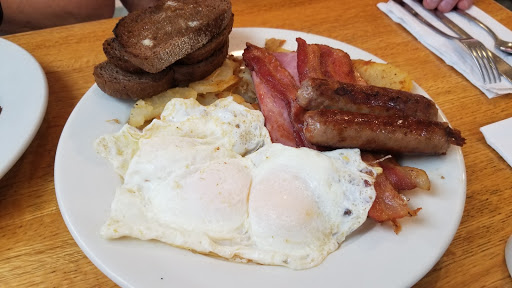 Nothing special. I got a breakfast special that included French toast, bacon, and eggs. The French toast was extremely bland and the bacon was undercooked. Its just a spot for locals to go and older people to hangout.