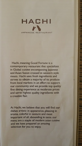 My wife and I went to Hachi on one of the few dates we get to go on having a 22 month old, and our experience was nothing short of exceptional. We got an appetizer, entree, and desert, and each course was some of the best food each of us had ever had. I highly recommend going here especially on a nice date night, it is very unassuming from the outside, but once you are inside the restaurant is clean, well laid out, and has a great environment and vibe. We loved it please check it out for yourselves!