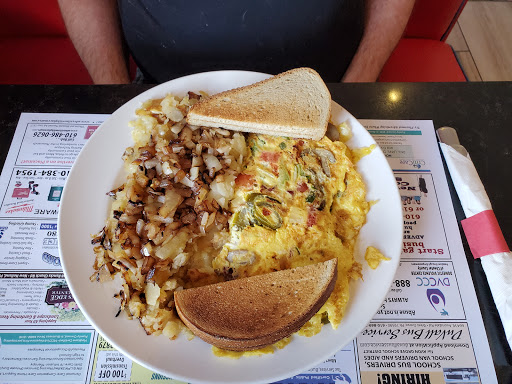 This review is based on one visit, but I will update after more. This diner used to be a pizzeria, and there are still a few visual clues in the interior that suggest its origin. Its light and spacious inside, with booths and tables available. The booths do not have fixed tables, which makes them more comfortable for larger patrons. Parking is a little bit of a challenge at peak times, with cars often waiting for a slot. The food is hot and tasty, and served quickly by an attentive wait staff. In fact, the speed of service helps to lessen the parking issues, since there isnt a lot of waiting for food. The menu, available on their website, is surprisingly impressive for a diner - certainly above average for choices. Breakfast offerings are fairly standard, but with a few interesting extras. The lunch menu has many options, and there will be something available for any palette. I deducted one star for the awkward parking, above average prices, and the poor soda choices (Pepsi products