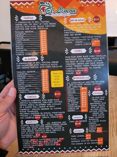 El Limon is our go-to Mexican place. We first got attracted to this place as we were seated at the restaurant across the street (Chiangmai) and having dinner. On impulse, we were checking reviews of places close-by and El Limon stood out in having very high ratings. A few weeks later, we came back to the area - this time to El Limon and were very impressed with the quality and value of the food here. I ordered a Cubana sandwich which went for the princely amount of $8.50 and was very filling and perfectly done. My wife went with a Alambre with mixtos - a variety of different meats + shrimp. It was lip-smacking delicious. The portions of the alambre were also so substantial that we took a fair bit of it home and enjoyed it later on. Since then we have been here twice and - just to give you a sense of how much I have enjoyed the cubana - I have ordered it on both occasions. My wife has had the alambre once and the fajitas on another occasion and both of us have been happy with those food choices. Given that my Indian taste buds are used to significant spice levels, I have had to use some of their spicy sauces that are on the counter but with those added in, I have found the flavor profiles excellent. As the decor of the place and menu prices will tell you, this isnt trying to be a fancy sit-down place and so when it comes to service, there isnt much too much to write about. However, the servers appear friendly and are happy to oblige with requests. The reason for taking off a star is the slightly ridiculous prices on the additions. Last night my wife requested guacamole and cheese on the side with her fajitas and from what i remember, a small cup of guac (the size in which you might have some ketchup served to you) was $2.50 and a similar-sized cup for cheese was $2.00 - those prices seem a little insane and out of place with the rest of their pricing. Also, while I have always gone back for the cubana, I feel as though I enjoyed it the most the first time around and on the last two visits, I have enjoyed it a tad less. In particular, I like my food to be served hot and my sandwich buns to be nicely toasted, and I felt that the sandwich had achieved both to a greater extent the first time I had ordered it. These comments notwithstanding - El Limon rocks and is an excellent choice for great, inexpensive Mexican food. We see ourselves going there on many occasions in the future.