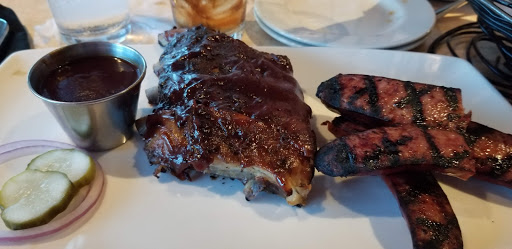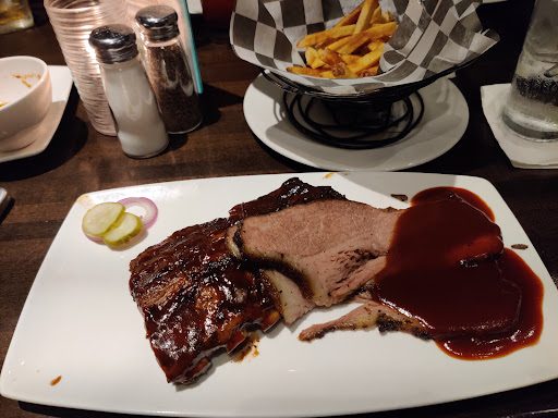 I will start out by saying the restaurant looks very nice and the decor goes together well. I got the smokehouse platter where I could pick my own entrees. I chose the chicken breast with the smoked sausage. The downside was it took forever to get our food (they were really dead that afternoon.). The waitress was very nice and friendly, but she was very slow to refill our drinks and get the things that we needed. When the food did finally come, wow, not what I expected and was talked up by the waitress. The greasy sausage was something awfully cheap found at an establishment like Aldis. The Mojave desert had more moisture than the chicken did! The French fries that came out were so burnt that they were hollow! My companions with me thought their food was mediocre at best. I had high hopes for the restaurant.