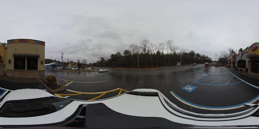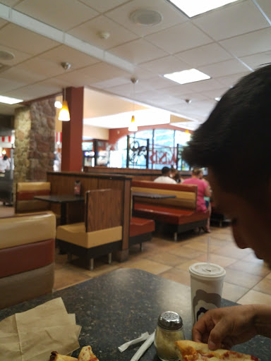 Nice new looking with an ice cream place and pizza in same very open space building. Clean and inviting. Friendly employees.