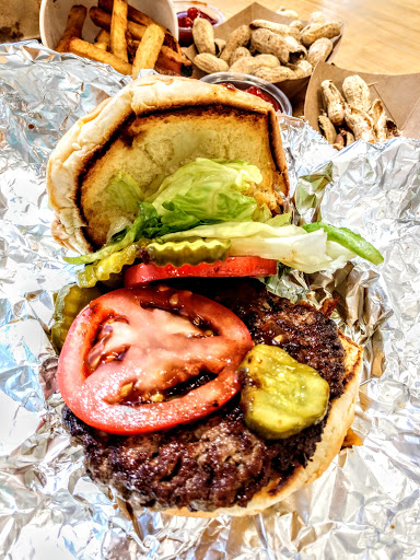 I love the peanuts and free toppings and I love how a large fry can feed a family of four great service never have had a bad experience with Five Guys.