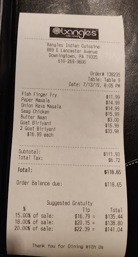 Never go to buffet menu or arrange any of your personal event at bangles .. it is total waste of money .. they never had enough food in any of their trays .. we always had to ask for more food, rotis never served, and even water.. when asked to fill the trays, they came back with totally different dish and didnt taste good at all.. no management, no courtesy .. and they kept welcoming guests even if they had no good left .. total cheating and looting .. I arranged one of my event and my guests always had to wait for food because trays were empty and some of my guests left without any food .. so embarrassing ..
