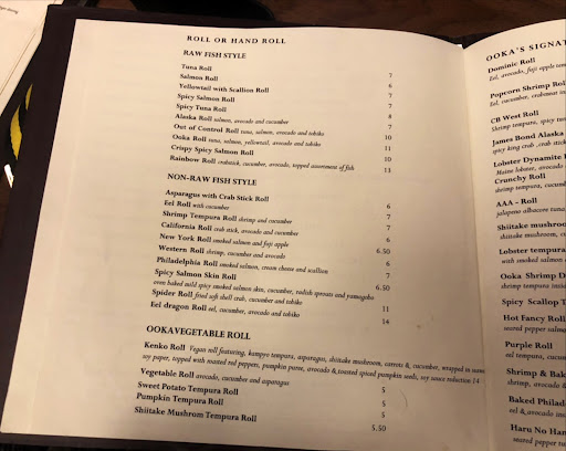 I love this ooka, you have to try the new york role (smoked salmon and fuji apple)- such a great combo of smoky, sweet, salty, and spicy. Lunch can get very busy, I highly recommend reservations for dinner. They have standard seating and several hibatchi grills.