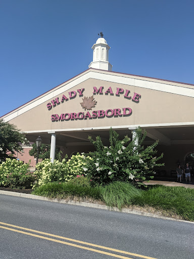 I had no idea this place existed. I live in Langhorne and was travelling home after spending a couple of days in Gettysburg. I was in no hurry to get home, so I decided to enjoy myself and take the back-roads, passing through York, Lancaster City, etal. I was travelling along rt. 23 and was starting thinking about lunch, when I saw the big parking lot on my right and the sign on the building that said Shady Maple Smorgasbord, and I thought to myself why not. I am not unfamiliar with smorgasbord (aka buffet restaurants) having eaten many times at the Old Country Buffet near where I live, which is now sadly closed. Ive even eaten at the Amish buffet restaurant in Bird-In-Hand, which I initially wondered if it might be the same place. Of course, despite similarities (the ample parking, the places for the tour buses to drop off their payload, the gift shop on the first floor, the restaurant on the second floor) I realized quickly enough that this was going to be a brand new experience. I dont recall the Bird-In-Hand buffet as being small, but this place was gigantic. I dont recall ever having to wait for a hostess to seat me in a buffet restaurant, but there she was, guiding me to my booth, explaining to me the procedural rules after I responded to her question that I had never been to this place before. I mentioned earlier that I wasnt unfamiliar with buffet restaurants, so from that point on it was smooth sailing. I didnt have a ton to eat. ( a cheeseburger, no condiments; a beef frankfurter, no bun; a quarter piece of kielbasa; a meatball (yum); korean bbq pulled pork (also very tasty), lasagna, white rice (which turned out to be generously buttered, thank you) and buttered egg noodles (a childhood favorite) and for dessert I took the sole piece of chocolate mint cake - a perfect finish ) I dont know from how from far away people travel to come here, but with the huge gift shop below and the big farmers market across the parking lot Im going to assume that it is a very popular destination, that I recommend that you should try, if your able, to visit, if not for the food (which shouldnt disappoint) than for the sheer enormity of it all, which is mind boggling.