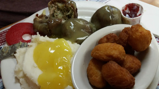 Old school Pennsylvania Dutch restaurant serves no nonsense authentic regional food. There were mostly locals when we went. We had the smoked sausages, a meatloaf sandwich, country fried steak, and a ham salad sandwich. The sides included lima beans; macaroni salad; potato filling - - this is the first time Ive ever had this dish - - creamy mashed potatoes with herbs in it; Jell-O salad which consisted of orange Jello with grated carrots in it; and a beet egg, which was a pickled beet and an egg that was pickled in beet juice -- very sweet. My favorite side was the corn fritters. Cream corn in a fritter was very tasty. For dessert we had the raspberry cobbler with milk, which comes warm in a bowl with a side of milk. We added a side of ice cream to that. Definitely a place worth visiting if youre in Lancaster County. Quite the experience.
