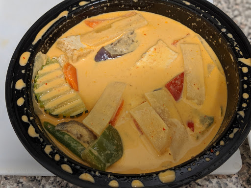 Ate in with a Thai friend who is a regular and friendly with the staff. I found the portions to be on the small side, but the prices were low too. I started with the beef, salad, extra spicy. It was excellent, with fresh greens, and not just iceberg lettuce like some other places. All of the other vegetables were fresh and high quality. But, while good, I felt the portion of beef was small. I then had green curry tofu, extra spicy,with brown rice. There was not much tofu at all, though the vegetables were very fresh and well prepared, and overall the dish was tasty. My hunger was not satisfied by the small portions, but my wallet was, and it was good. Service was amazing. Everything was right without having been written down, including special requests. Server checked on everything periodically, refilled water and napkins almost automatically, and was otherwise attentive. I would definitely go back. I would just have to order more food.