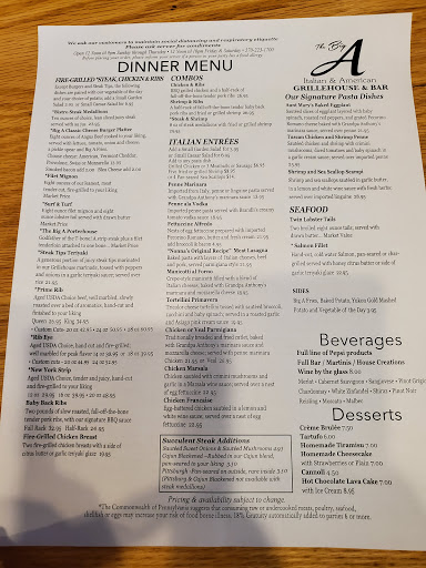 Our party of eight--including two of our kids were summer vacationing in the Poconos for the first time. While on the way to the Waterfalls (an attraction that the Poconos is famous for) we were driving on Rt. 209 and saw the the billboard for the "BIg A Grillhouse". With all of us hungry we decided to stop. There is a beautiful scenic pond in front of the restaurant. We were politely seated despite how busy the restaurant was. A varied menu, certainly reasonably priced-- we had appetizers, steaks and prime rib (cooked exactly as ordered), baked lasagne and chicken marsala. The kids had chicken fingers (all white meat)--certainly not fast food. The dessert menu was to die for. The food was amazing and the restaurant and rest rooms were exceptionally clean. With the excellent service and deleicous food, they also advertise that they have entertainment on certain nights and periodically a dinner Mystery Theater Night. Well be sure to be back again!!