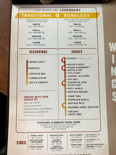Excellent wings. Same thing every time because its just too good. And if that wasnt the best part, they should call the place Buffalo Wild Wings Grill & Good Cake because the double fudge chocolate cake is the greatest product I have ever put in my mouth. It is to die for! Great place to eat!