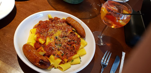 The food was horrible. Everything was out of a bag. My sisters meal had to be sent back; there were multiple entire cloves of garlic in her pasta. The location was ugly and far too bright and open. And to top it off, our waitress slid things across the entire table... Wouldnt recommend it, wouldnt go again.