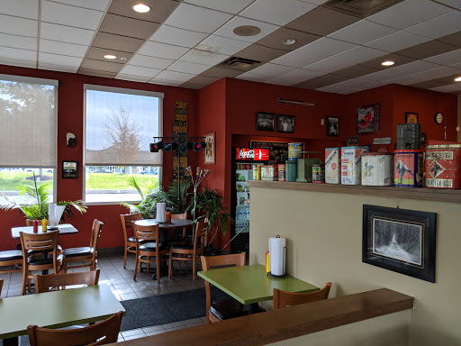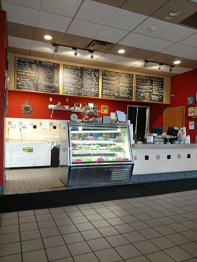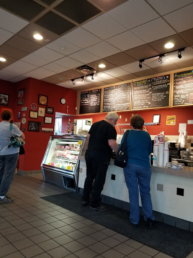 A great burger! Large gourmet sandwiches, burgers, salads and a few speciality items. Prices very reasonable, atmosphere is tables inside and out, set up like a fast food restaurant or carry out. The service was stellar above and beyond any place Ive been to. Server even brought compliment piece of apple cake just to try their bakery items which was yummy. Restaurant sits back in the mall plaza kinda hard to see with commercial fast food chains nearby, but seek it out worth the stop in Morgantown Pa