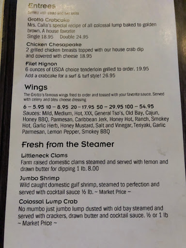 Looking for some oysters on a Sunday afternoon and Grottos came up as a suggestion. We gave it a shot, and this place did not disappoint! Got there early enough to split two dozen Ye Olde Black Salt oysters which were phenomenal. Hit the bartender up for a mixed drink suggestion and she whipped up a stellar raspberry martini that paired really well. The oysters were so good, we did the full seafood tour with 2lbs of little necks and a half pound of steamed shrimp. The back of the menu states "Harrisburgs sexiest crab cake", so we had to try. Maybe not the sexiest in appearance, but this was one good crab cake! The food here was terrific and the prices make this five stars all the way. I almost hate to review this high, as I would love for it to stay uncrowded for our next visit soon.
