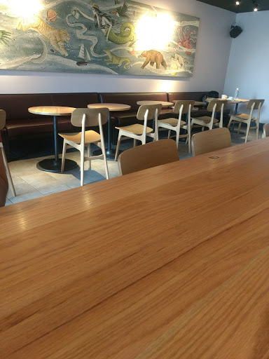 Terrific staff. But lots of squatters. Three of us looking to grab food and drinks but no place to sit. One man at a table with his phone and newspaper who purchased NOTHING. Walked by 45 minutes later and he was still there ...with nothing! Just stealing wifi I presume. Not fair to paying customers.