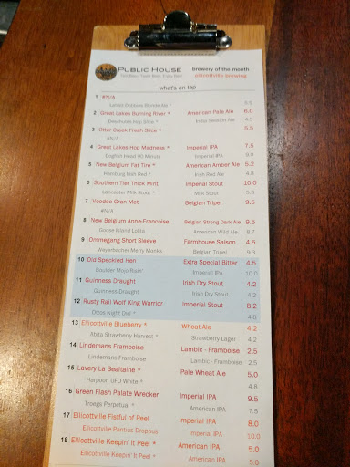 Great atmosphere, food, and beverages. There is always a medley of microbrew drafts available, along with a wide selection of bottle beers. The food is upscale bar food, for instance they serve homemade chips and flatbread pizzas, along with traditional fare like hamburgers. The price is moderate. It can get loud, but its a wonderful spot for a meal or happy hour.