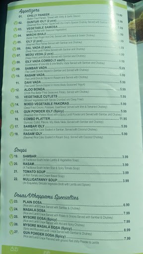 Brilliant South Indian food! Been going there for a couple of years - staff are nice, food is vegetarian and to die for. The Sunday evening buffet (after 6pm) is excellent value - really great assortment of dishes, with a nice Vegetable Biryani, excellent Sri Lankan curry dishes and an exotic assortment of vegetable curries. Plus Idly, Dal Vada, Sambar and Rasam. They serve a fresh (huge) Dosa with (variably) spicy potato filling, when you are ready. Overall, its a great choice if youre feeling adventurous.