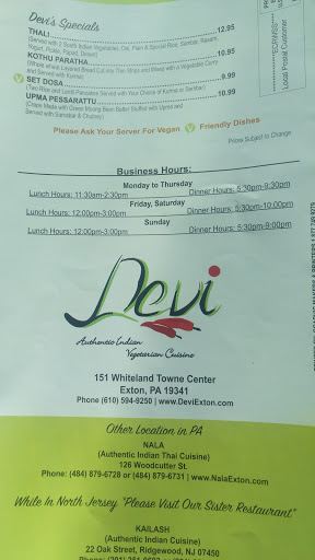 Update Sep 2017 : The quality was not consistent as earlier. Was a bit disappointed with the taste - probably changed their chef I and my friend were in a mood for some authentic spicy sputh indian food - hence Devi. Yesterday, Wednesday night, I took suggestions from the waiter on what to order - He suggested - "Gun Powder Idly" and "Bisibele Bhath" and wow! I was taken back to Bangalores MTR! Great flavorful authentic food. And very kind waiters. Surely going to back for more from all the way from Doylestown, PA.