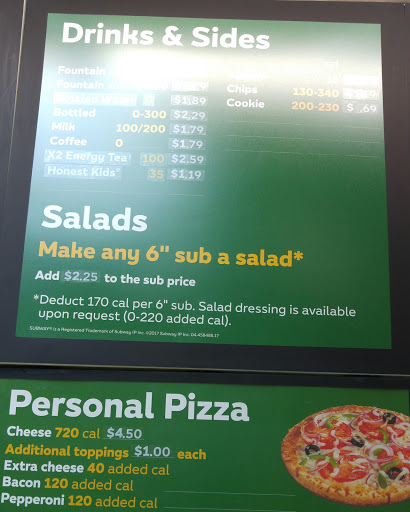 Not only did they over charge my sandwich, but my cookies too. The 6" Club is $5 + $2.50 for the meal. I was charged $5.50+$2.50. Three cookies are listed as $1.10 and I was charged $1.70. They barely put any veggies on my sandwich. Two thin tomato slices, two thin cucumber slices, and about three little pieces of green pepper. My usual Subway in Montgomeryville loads the veggies on to make sure you get your moneys worth and that you want to return. Two of my cookies werent fully cooked. Plus he put the cookie bag into the main bag upside down. So when I removed the cookies they fell out of their bag and onto the floor. This is my first and last visit and I recommend others to stay away.