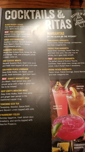 Personally? If you are looking for good pizza, its good here but Marios pizza down the street is better. That said, if you are looking for variety, ambience or pepsi...choose Uno pizzeria and grill. Lots of options including desert and salad, seafood and steak. Serving staff is great too.