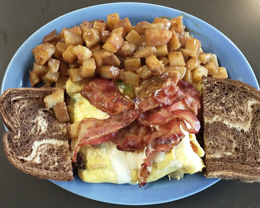 Classic local breakfast diner. Pancakes, bacon, eggs, bottomless coffee.